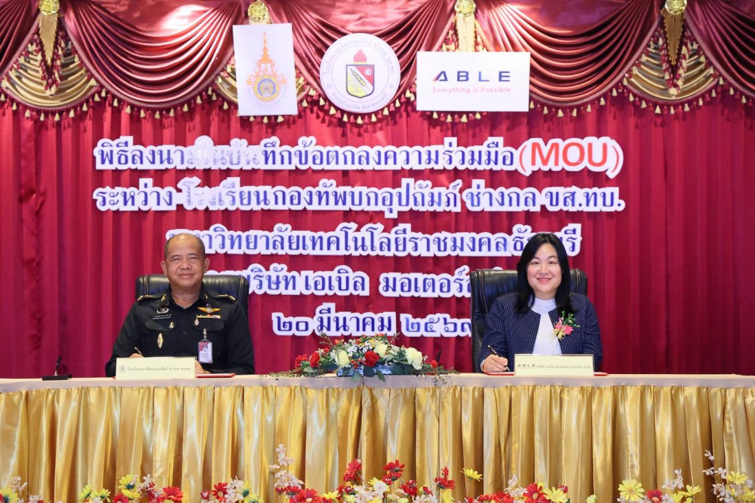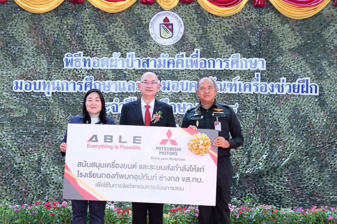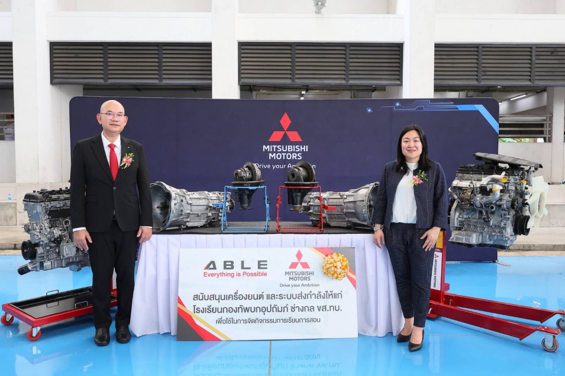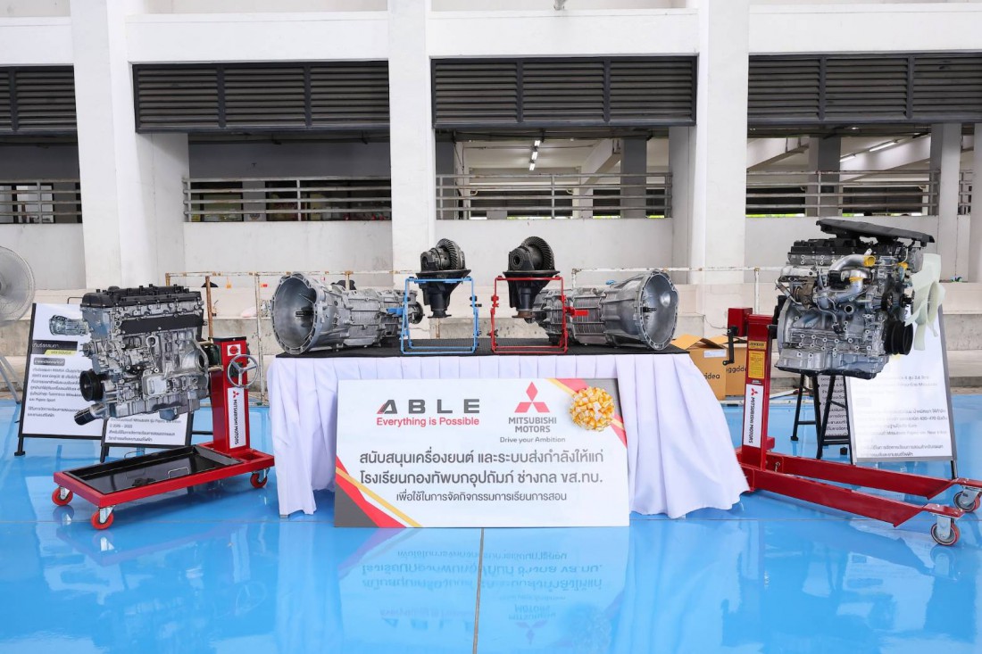 บริษัท มิตซูบิชิ มอเตอร์ส (ประเทศไทย) จำกัด แจ้งข่าวว่า บริษัท มิตซูบิชิ มอเตอร์ส (ประเทศไทย) จำกัด ร่วมกับ บริษัท เอเบิล มอเตอร์ส ปากเกร็ด จำกัด เดินหน้าเสริมศักยภาพทักษะเชิงช่างในสายอาชีพอย่างต่อเนื่อง ด้วยการมอบเครื่องยนต์และระบบส่งกำลัง ให้แก่ โรงเรียนกองทัพบกอุปถัมภ์ ช่างกล ขส.ทบ. โดยภายในพิธีมี การลงนามบันทึกข้อตกลงความร่วมมือ (MOU) ระหว่างบริษัท เอเบิล มอเตอร์ส ปากเกร็ด จำกัด และ โรงเรียนกองทัพบกอุปถัมภ์ ช่างกล ขส.ทบ. โดยเป็น การบันทึกข้อตกลงความร่วมมือทางวิชาการ ผ่านการจัดการเรียนการสอนหลักสูตรประกาศนียบัตรวิชาชีพ สาขาวิชาช่างยนต์ สาขาวิชา ยานยนต์ไฟฟ้า และประกาศนียบัตรวิชาชีพชั้นสูง สาขาวิชาเทคนิคเครื่องกล โดยเปิดโอกาสให้นักศึกษาได้ฝึกปฏิบัติงาน ในสถานประกอบการ ส่งเสริมการเรียนรู้จากประสบการณ์จริง เพื่อสอดรับกับวัตถุประสงค์ในการประสานความร่วมมือ ในการจัดการอาชีวศึกษา เพื่อผลิตและพัฒนากำลังคนให้สอดคล้องกับพระราชบัญญัติการศึกษาแห่งชาติ ตามนโยบาย ของรัฐบาล และความต้องการของสถานประกอบการอย่างยั่งยืน
